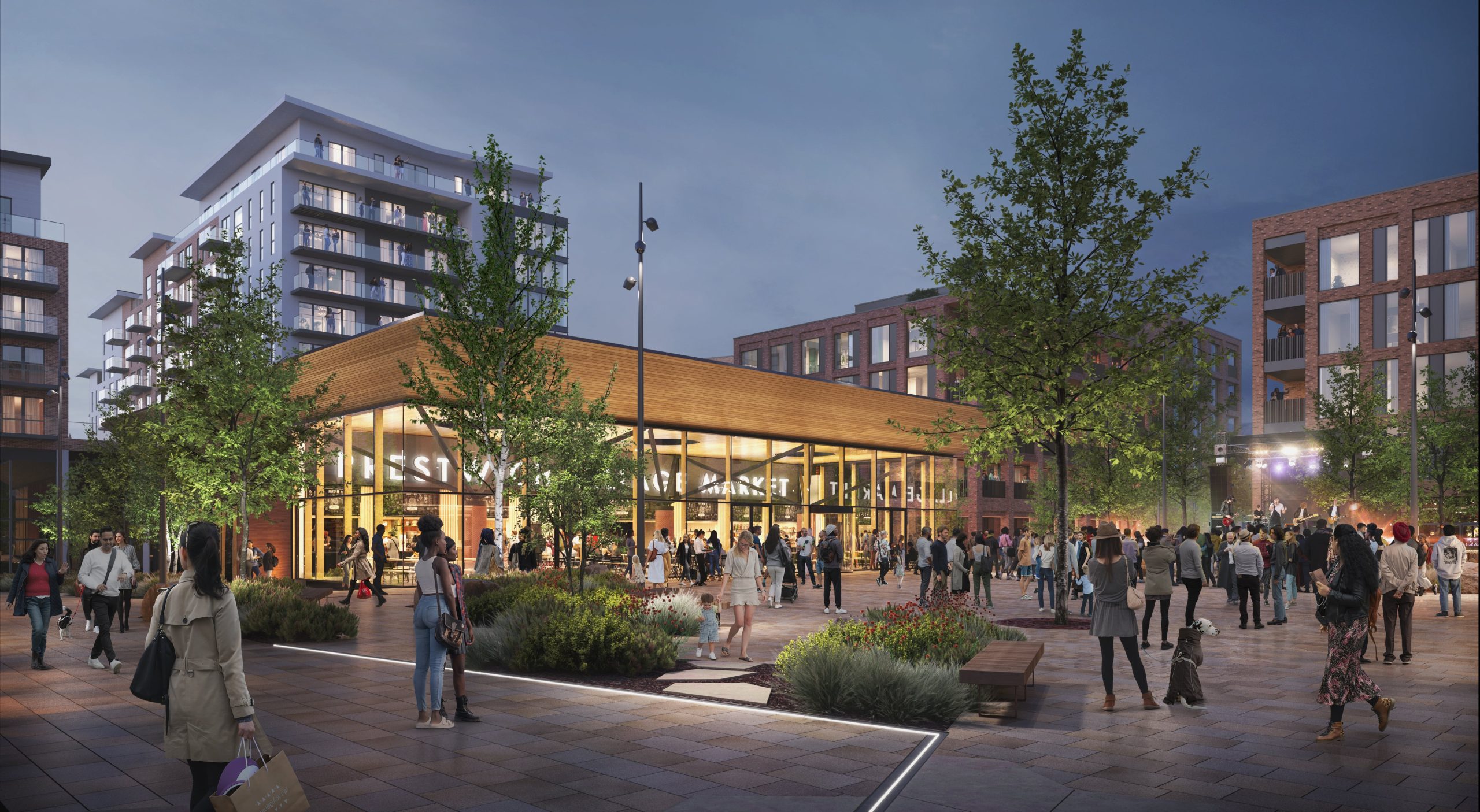 A new village square with family-friendly social places for all the community to meet and relax, which has been flexibly designed so it provides space for pop-up events like markets, food festivals, art exhibitions and live performances.